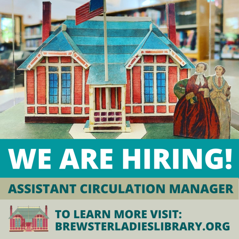The Brewster Ladies Library seeks qualified applicants for Assistant Circulation Manager. This position provides excellent circulation services. Position serves as an assistant in public services department and assists with the responsibilities for the daily operations relating to the circulation desk and the acquisition, processing, and withdrawal of all library materials.